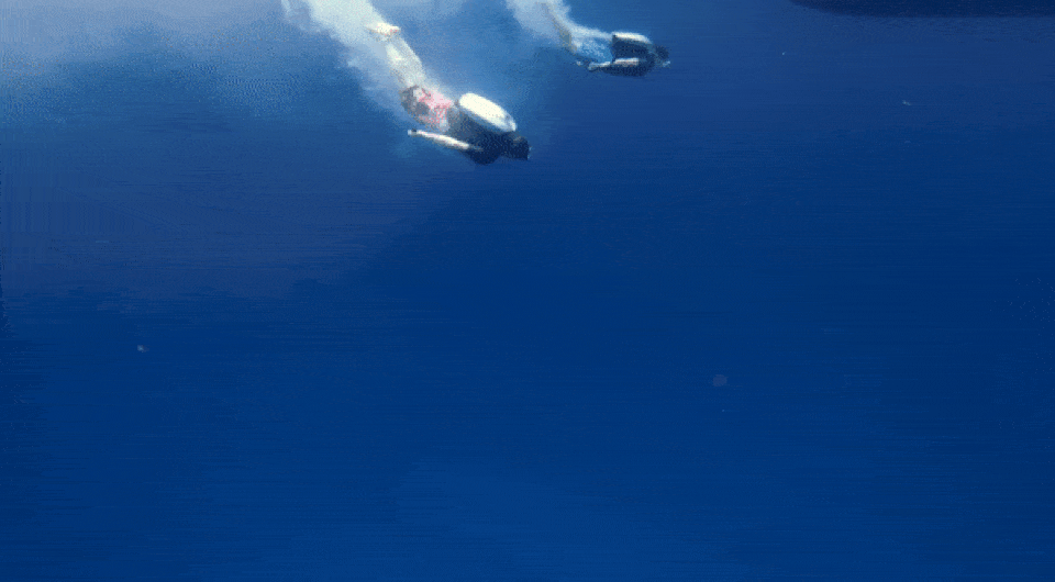 Το νερό, που λειτουργεί ως αεριωθούμενος κινητήρας, αναρροφάται και στη συνέχεια εκτοξεύεται με μεγάλη ταχύτητα από το πίσω μέρος, επιτρέποντας μέγιστη δύναμη πρόωσης 40 κιλών, πράγμα που σημαίνει ότι μπορείτε να κολυμπήσετε και να απολαύσετε τον ωκεανό!